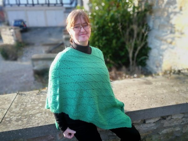 Gestrickter Poncho Mit Hakelbordure Grosse 36 46